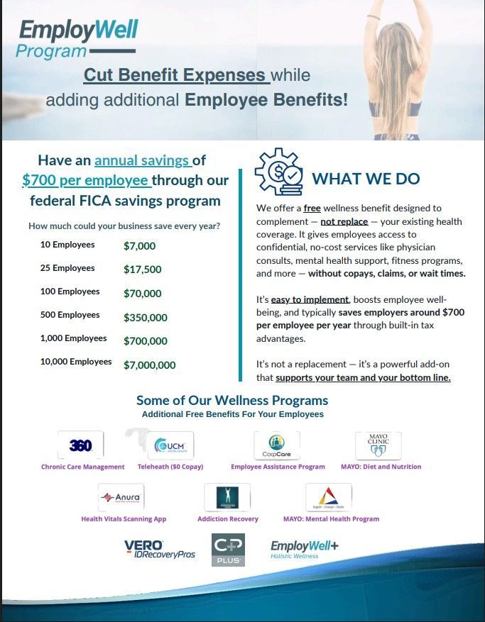 Running a business today means balancing two critical priorities: keeping costs under control and keeping employees engaged. What if you could do both at the same time? That’s exactly what the EmployWell Program delivers—helping companies cut benefit expenses while adding valuable, no‑cost benefits for employees.